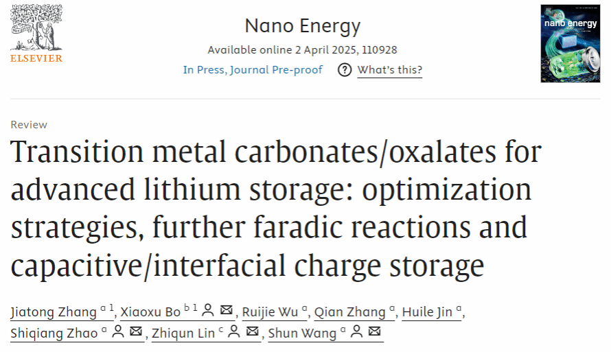 该成果以“Transition metal carbonates/oxalates for advanced lithium storage: optimization strategies, further faradic reactions and capacitive/interfacial charge storage”为题发表在国际能源类顶级期刊《Nano Energy》上。黑料社