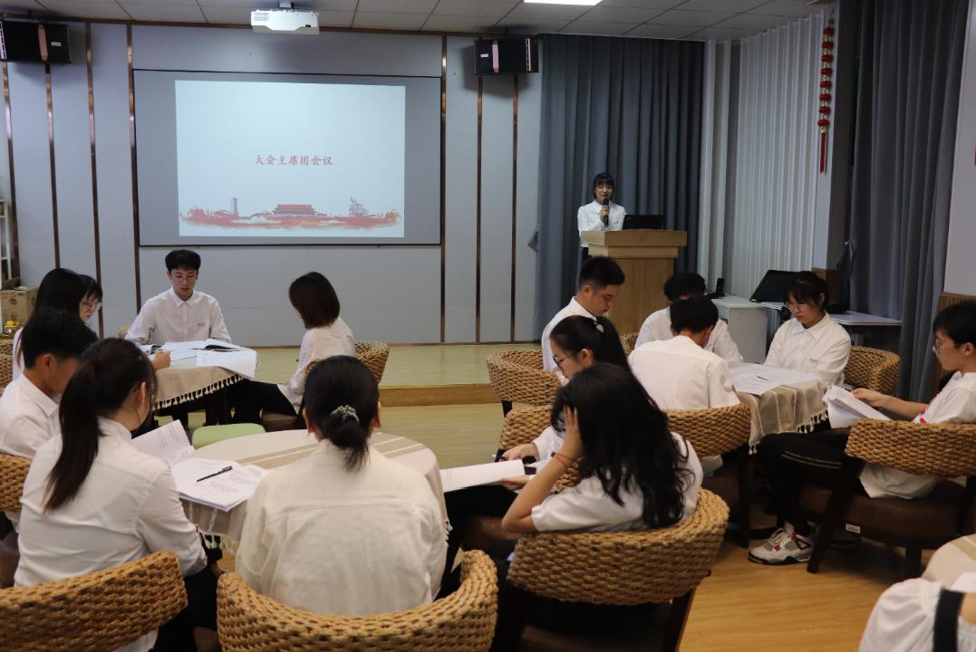 2021-2022学年学生代表大会于11B-208会议室召开。参加本次会议的领导与嘉宾有:院党委副书记周敬业老师、院团委书记孙玮玮老师、学工办邹涌彬老师、团委学生会指导老师李政以及2020-2021学年团委、学生会主席团成员:徐北航、戴鸿、金再胜和王佳成同学。