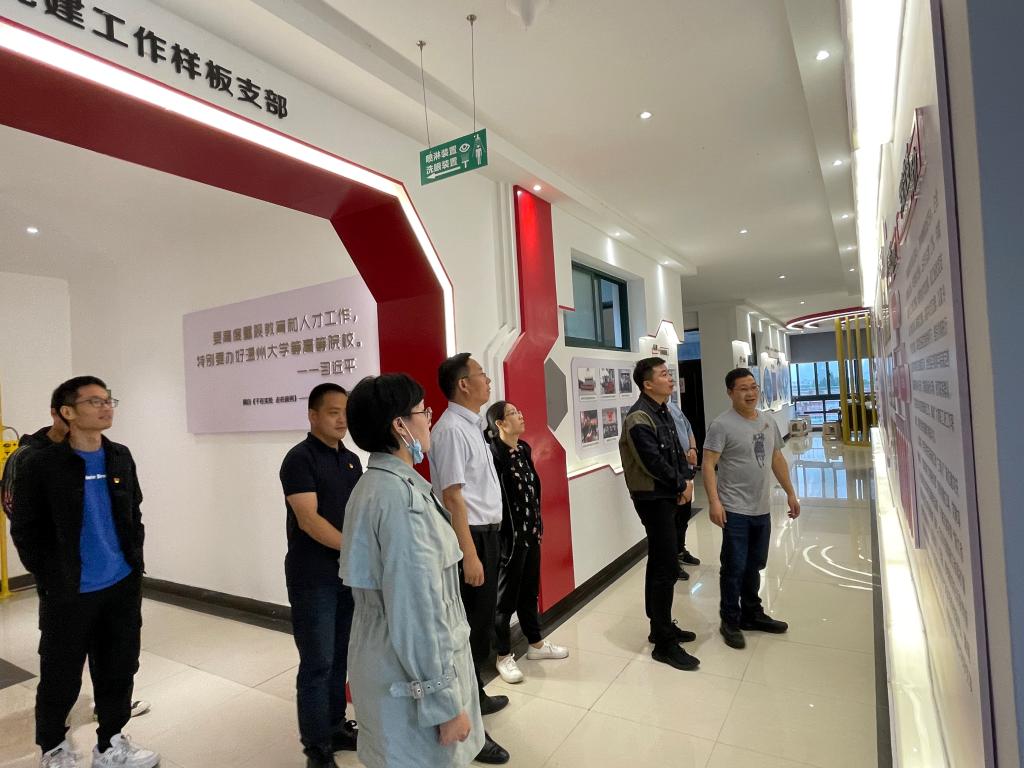 陈贤新副书记一行参观了黑料社 “全国党建工作样板支部”党建文化长廊,查看了黑料社 无机化学实验室及工作开展情况。会上,双方就全国样板支部培育创建方案与工作思路,以及社会服务、支部联合共建、党建+、本科生教学与科研等方面进行了广泛深入的交流。