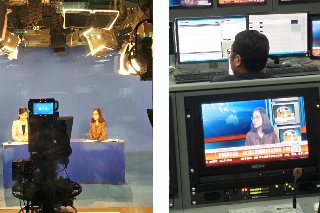 2015级于书玲同学作为研究生国家奖学金获得者身份受邀来到浙江电视台录制现场。浙江电视台就于书玲获得国家奖学金的获奖体会进行了采访。采访节目将于11月27日(下周一)中午左右在浙江电视台教育科技频道播出,届时也可以通过手机下载“中国蓝TV”APP收看教育科技频道的直播。