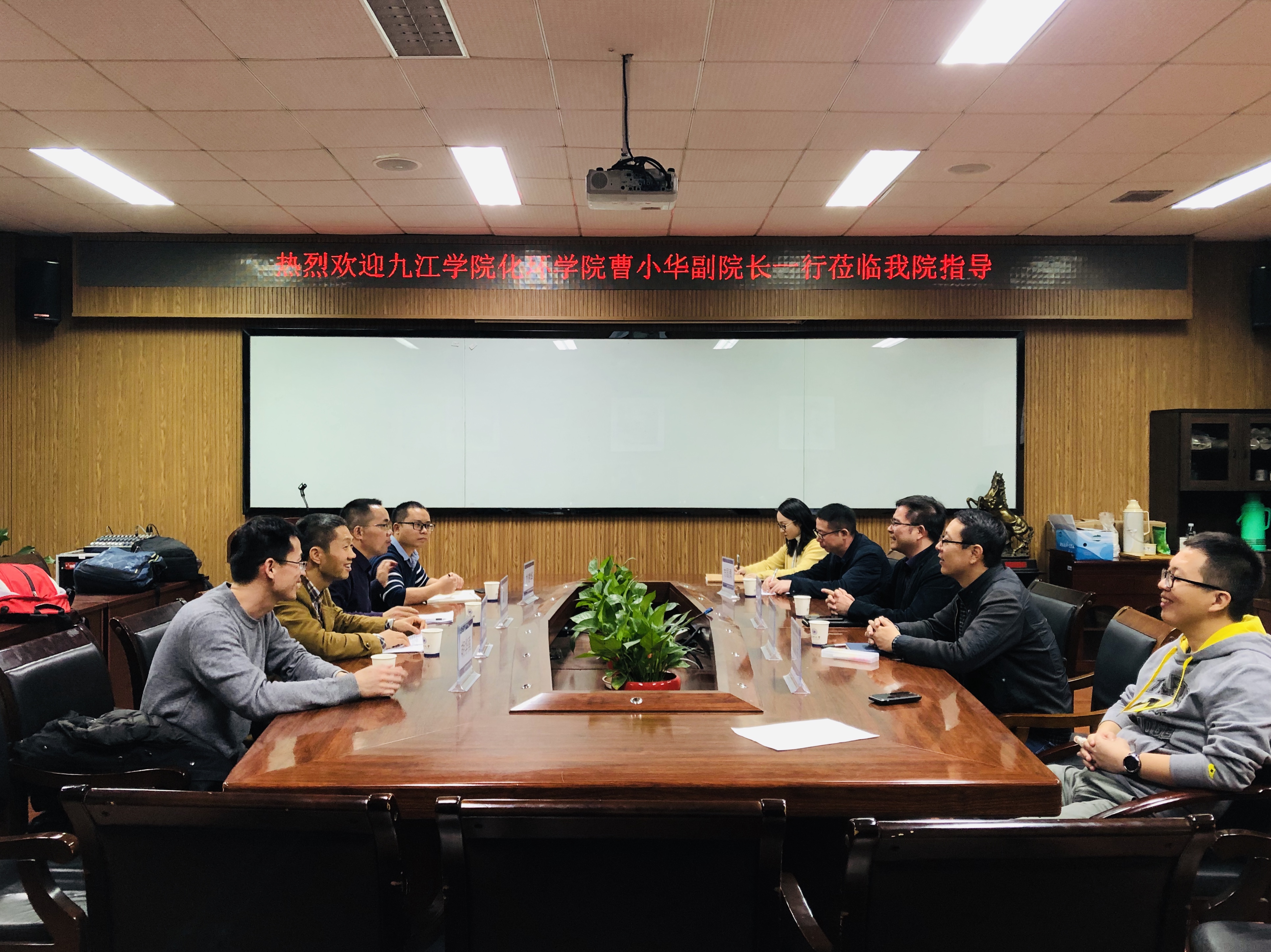 参观交流,副院长夏远志、化学系负责人方国勇、应化系负责人王兆伦、材料系负责人杨昕宇等人热情接待了曹小平副院长一行四人并进行了亲切交流。