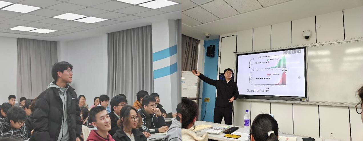全体师生投身科研、热爱科研,营造刻苦钻、科学创新的学术氛围。在提问环节,侴术雷教授借同学提问强调要对自己有自信心,要时刻谨记和严格落实四个“有”,鼓励同学们利用大学时光认真学习、努力提升自我,大家都可能成为科研领域的未来新星。