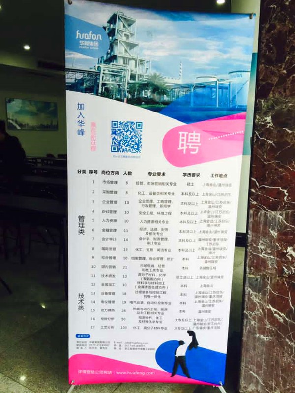 华峰是全球最大的聚氨酯鞋革树脂生产企业。长达九分钟半的宣传视频,让应聘者初步了解到了华峰集团在国内化工领域的邻先地位。从企业发展历程,到员工福利待遇,再到新的黑料社精神,华峰集团人力资源部的廖经理一一地为参加招聘会的学生进行了讲述。