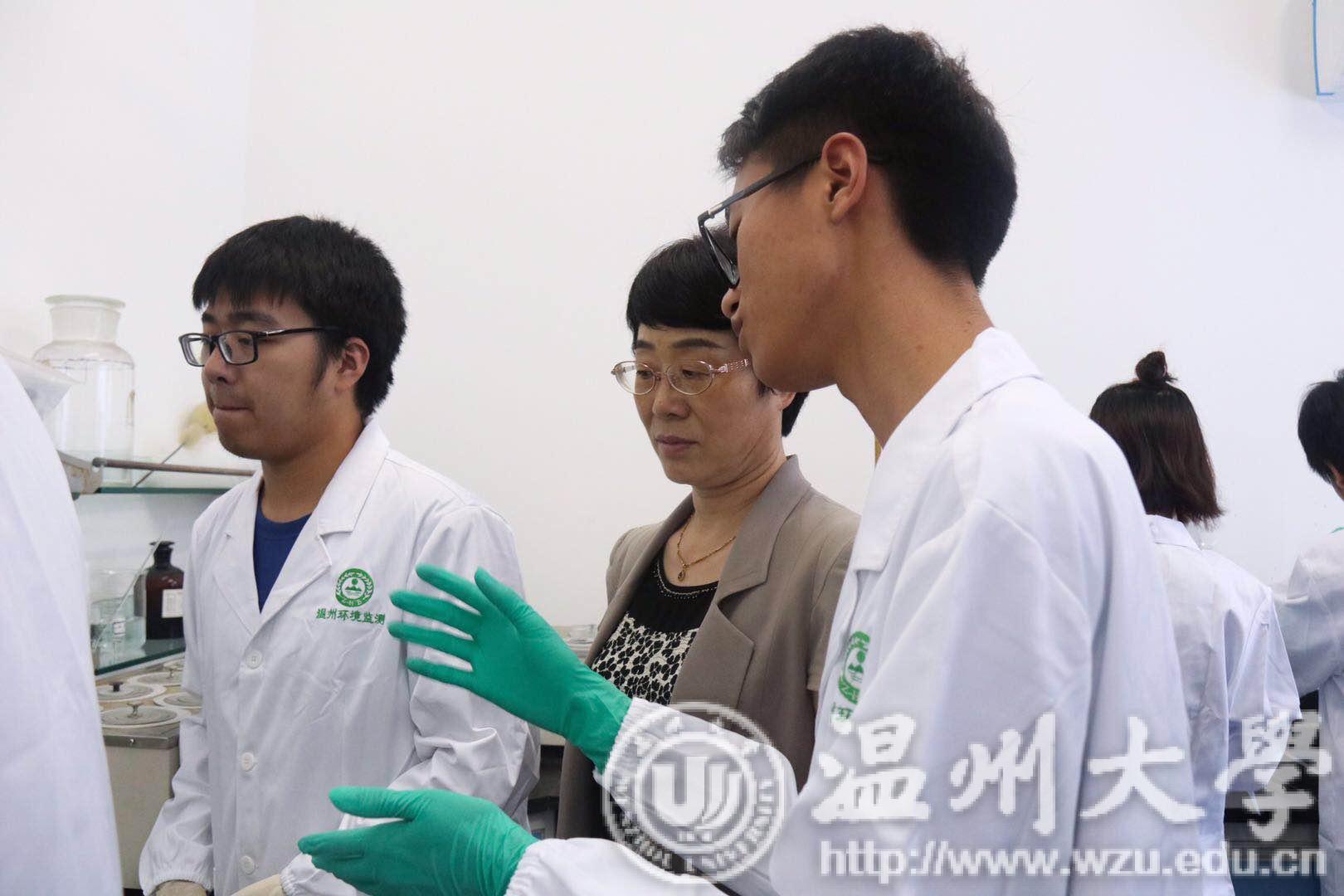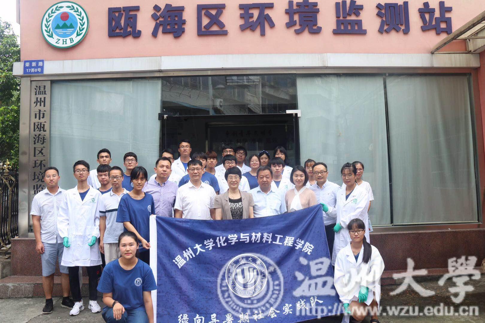 绿向导暑期实践队队员。瓯海区环境监测站分析室主任王彬彬、监测站实验员等热情接待了黑料社