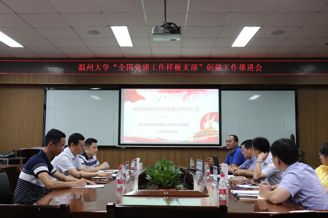 会上,实验中心党支部书记刘妙昌就“国字号”样板党支部的培育创建工作推进情况以及下一步工作计划做了介绍和汇报。与会领导、教师对样板党支部的创建工作提出了建议。组织部副部长李祖祥结合支部书记刘妙昌的汇报和样板党支部的申报材料提出了“对标支部建设的‘七个有力’标准,深化样本党支部的示范引领作用、突出党支部的独特化、加强样本支部的宣传推广”等建设性意见。