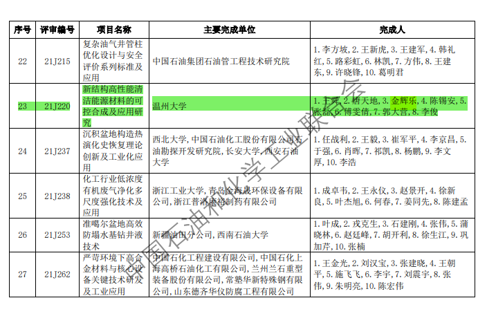 中国石油和化学工业联合会科学技术奖为全面落实习近平总书记“四个面向”的新要求,加强科技创新的系统布局,激发创新创造活力,加快科技成果的转化,强化石油和化工行业对知识产权创造、运用、保护和管理的工作导向,鼓励在推动行业科学技术进步中做出突出贡献的集体和个人,经国家科技部批准成立的奖项,每年评审、授奖一次,并将其中优秀获奖成果提名国家科学技术奖。