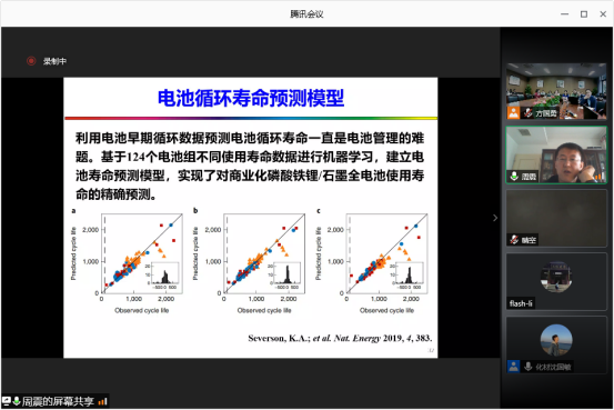 首先,南开大学周震教授作了题为“从计算模拟到人工智能的能源材料创新”的主题报告。该报告指出,目前太阳能的利用率还很低,我们需要通过一些技术提高其利用率,并积极地开发清洁新能源。周教授从光催化分解水、二维材料催化和储能(电极材料)三方面来进行讲解。用高通量筛选出可用的材料,提高目的性,从而提高实验效率。基于数据库的机器学习会给未来的研究提供极大的便利。