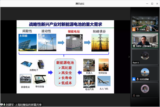 上海硅酸盐研究所刘建军研究员作了题为“计算电化学与高性能电极材料设计”的主题报告。该报告介绍了电化学储能材料的发展趋势,从有机柔性钠离子电池设计、无机阴阳离子电化学材料设计和电催化剂的筛选判断三方面讲解了电极材料的计算筛选与设计。
