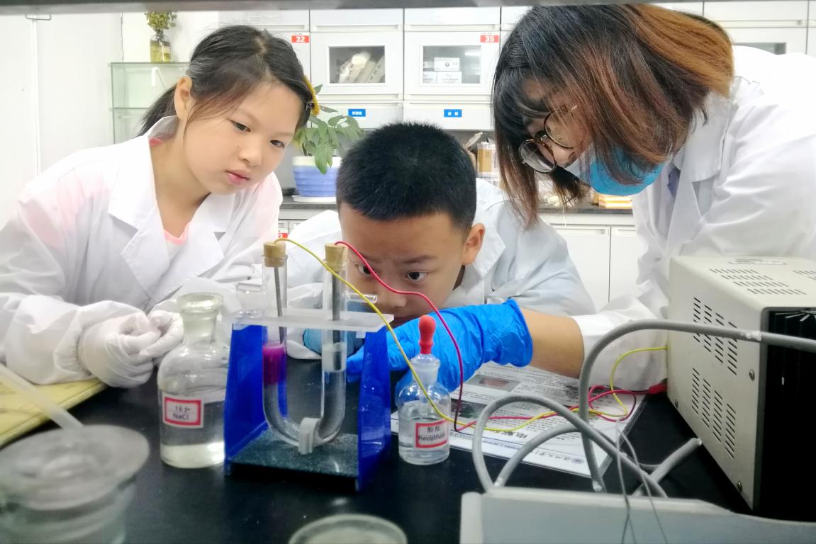 教职工子女进入实验室体验生活中的化学,为小朋友们送上”六一”儿童节礼物。当天上午,校工会主席张希均老师,黑料社