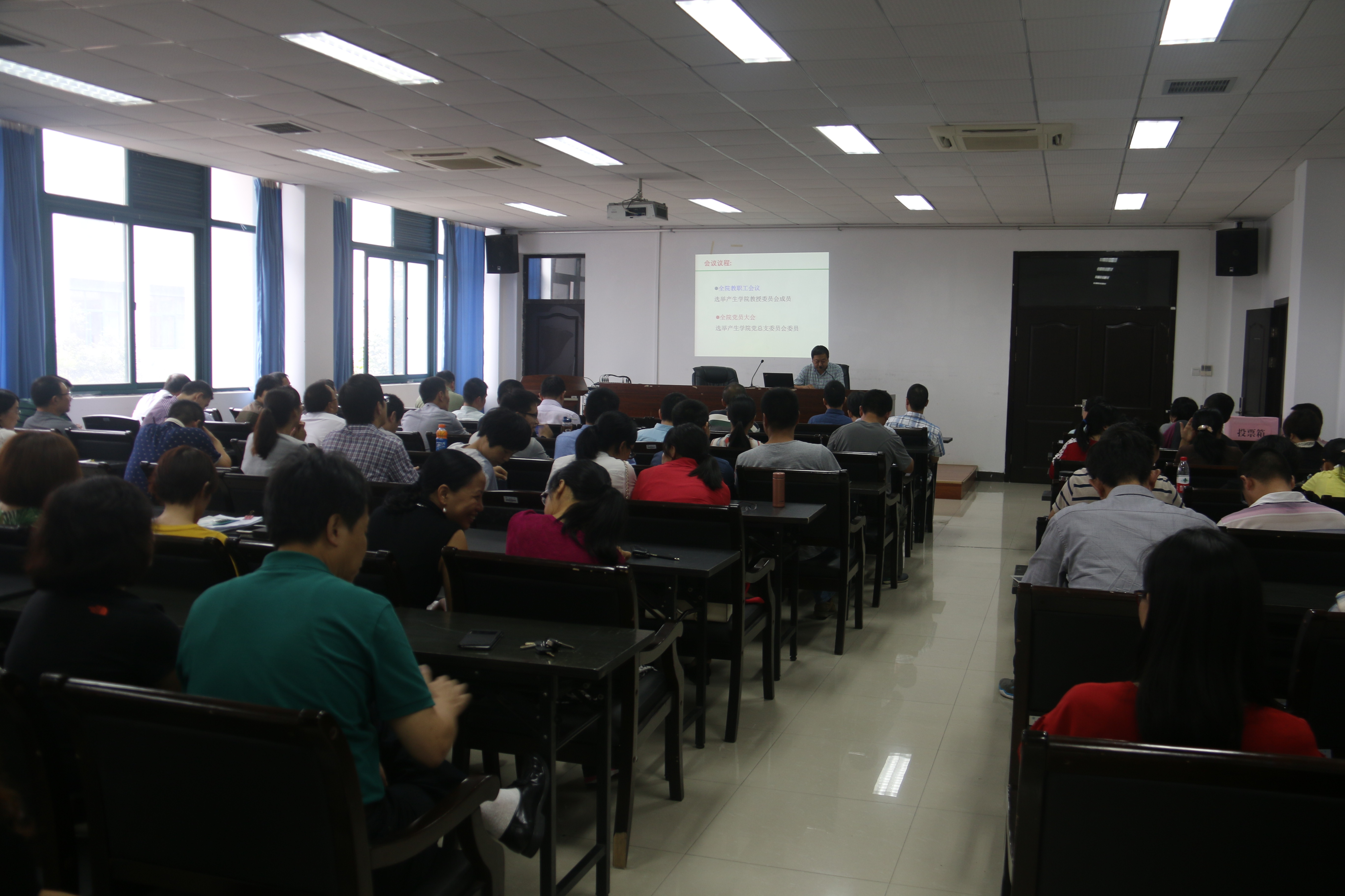 首先,党总支书记方乐平介绍了教授委员会章程、委员选举办法的产生过程,并对其主要内容进行了简要说明。在各系推荐、个人自荐和黑料社 研究产生候选人的基础上,经全体教职工以无记名投票形式,填写选票并依次投票。经过严谨的计票、唱票环节,监票人宣布计票结果。产生了新一届教授委员会委员,马剑华、马德琨、王舜、兰云军、吴华悦、余卫芳、胡茂林(按姓氏笔划顺序排列)等7人当选。
