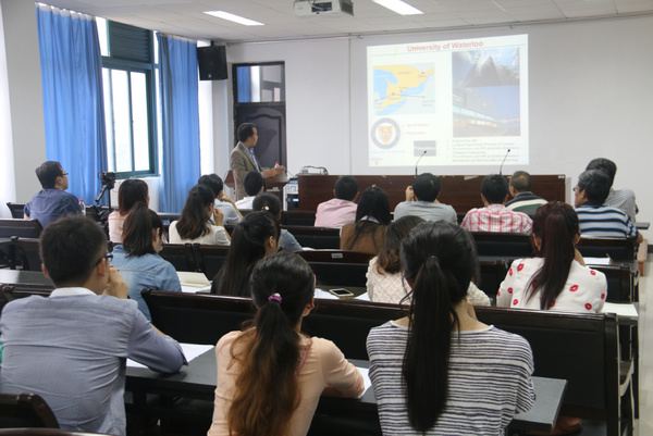 师生作了题为《Advanced High Energy Lithium-ion Batteries and Zinc-air Batteries》的学术报告。展示了其课题组近年来在燃料电池、锂电池以及金属空气电池等电化学能源研究领域中取得的系列成果,详细介绍了硅基高能锂离子电池以及纳米双功能催化剂在可充电锌空气电池中的最新研究进展。整场报告知识面宽、信息量大,语言通俗、深入浅出,使人耳目一新、受益匪浅。会后,陈忠伟博士与参会教师和研究生就报告的相关内容进行了深入的交流和探讨。
