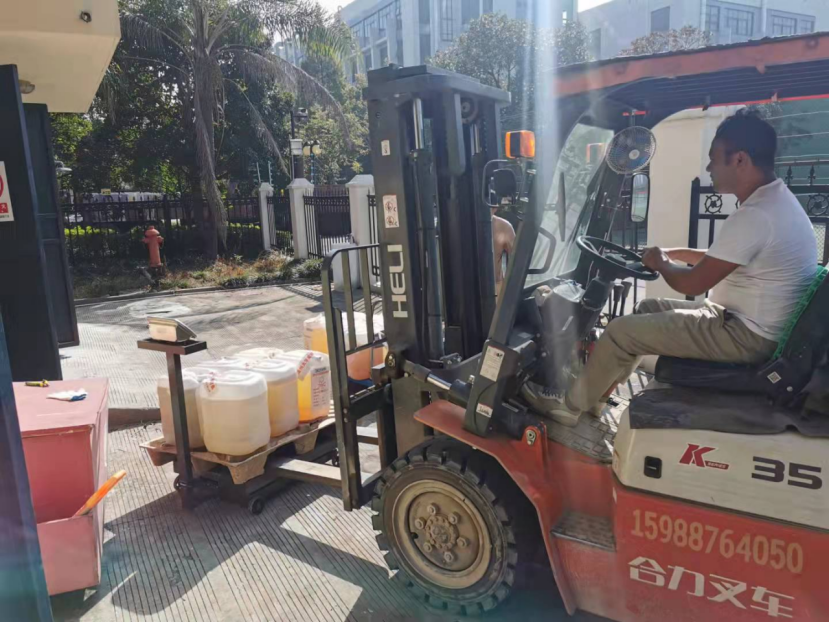 2021年9月29日早上8:00,处置公司人员进行废液测试,以有效保障废液转运过程的安全。经过磅、装运、交付危废转运联单后,于中午10:40顺利离校。此次实验室废弃物共转移处置有机废液、无机废液等共计7.111吨,其中生环黑料社