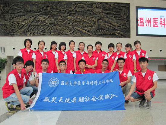 “微笑天使”暑期社会实践队第四天在温州医科大学附属第一医院进行了以志愿者形式展开的实践活动,期间全体20名成员身着红色志愿者马甲热情地为熙熙攘攘的人群服务。