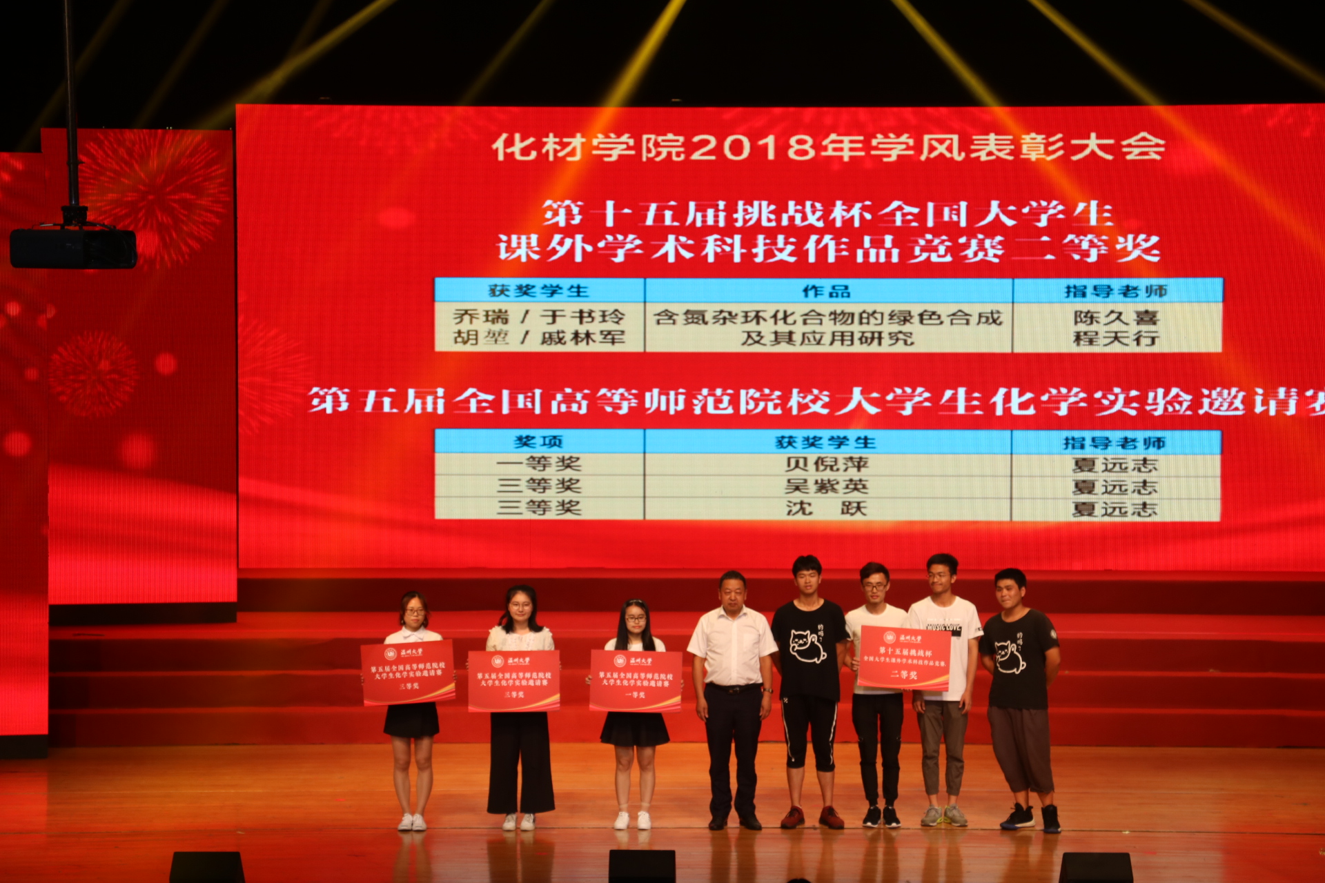 随后主持人宣读了关于表彰获得国家奖学金、谷超豪奖学金、学科竞赛、科技竞赛、优良学风班、考研考博先进个人、优秀教师等名单,现场嘉宾和领导分别为他们颁奖。