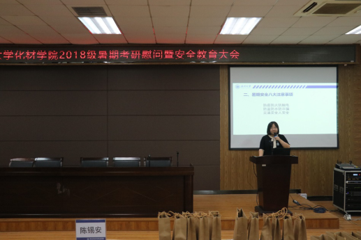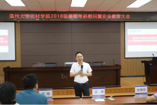 2018级暑期考研慰问暨安全教育大会在11c-401考研教室举行。王舜院长、杨植副院长、陈锡安副院长、周敬业副书记、辅导员孙玮玮、邹涌彬以及2018级考研留校学生出席本次大会,会议由周敬业副书记主持。