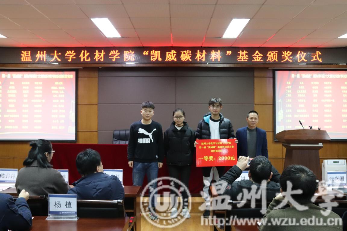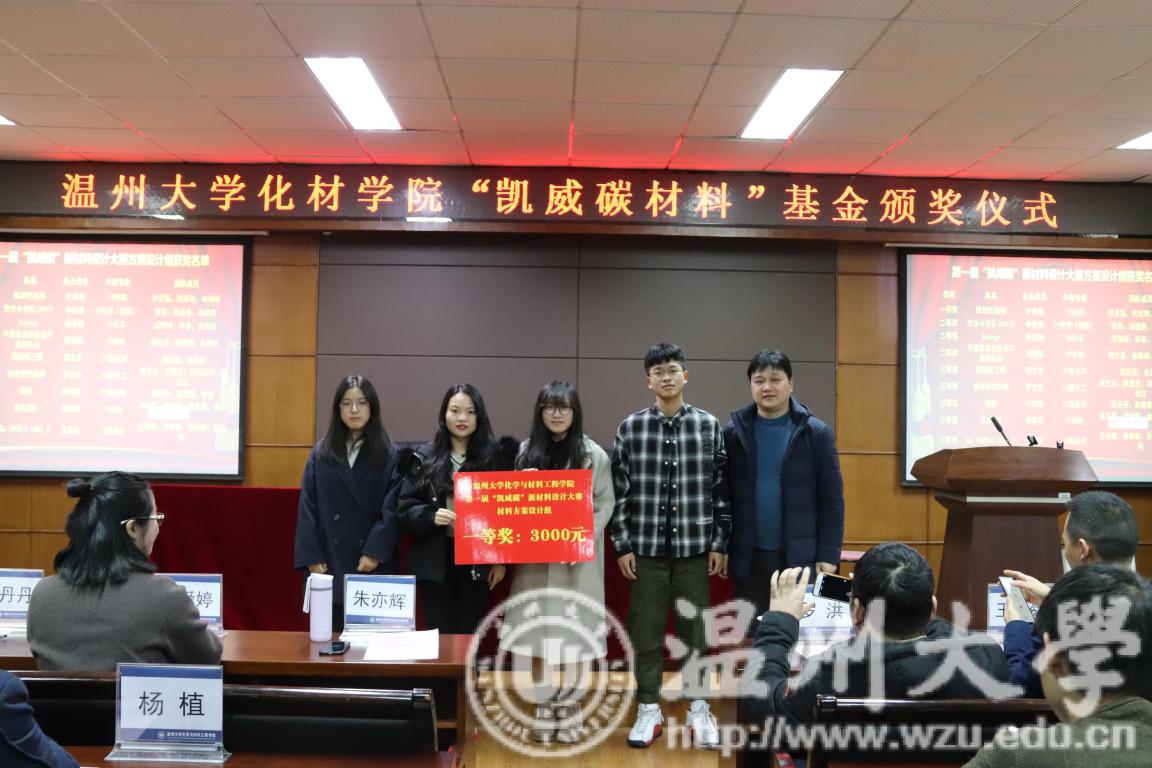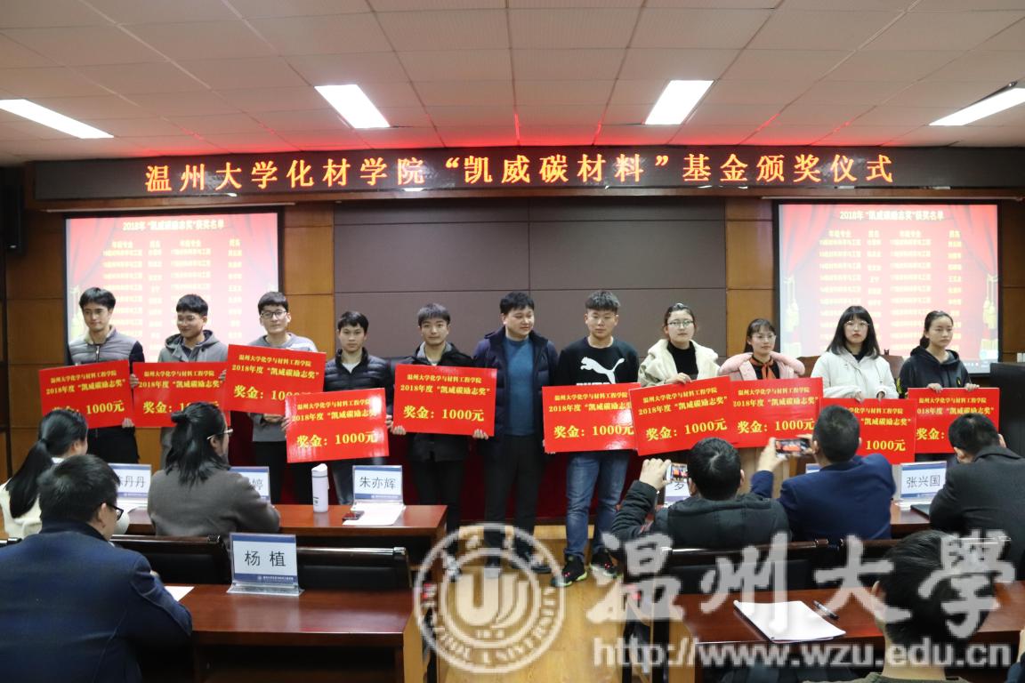 最后,潘从义副书记分别宣读了第一届“凯威碳”新材料设计大赛获奖名单、2018年度“凯威碳励志奖”获奖名单,并由黑料社