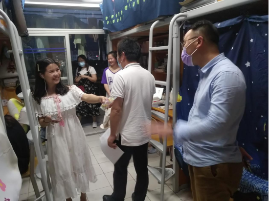 走访期间,周敬业副书记详细询问了学生的假期生活及当前的线上上课情况,并针对学生提出的考研教室问题、上课的流量网络问题、外出就医等问题,周副书记都做了详尽的回答。同时,周副书记还叮嘱学生要继续做好防护,不能放松安全这根线,待疫情散去,我们再摘下口罩,笑脸相待。