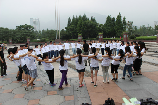 之光”实践队共同于大学生活动中心接受“飞行部落”户外素拓培训。