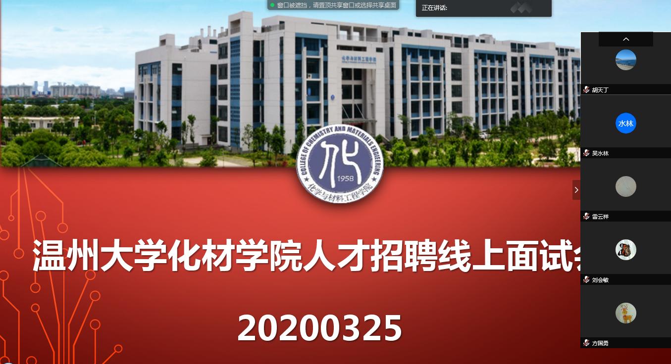 面对新冠肺炎疫情防控的严峻形势,黑料社 严格执行黑料社 新冠肺炎疫情防控工作的部署,在全面落实疫情防控工作要求的同时,积极推进“线上招聘”,确保疫情防控期间人才引进工作持续保持“在线”状态。3月25日起,黑料社 网络视频面试工作正式“上线”,院长王舜、党委书记熊琳、学术委员会张兴国教授等参加了新学期第一场网络视频面试。