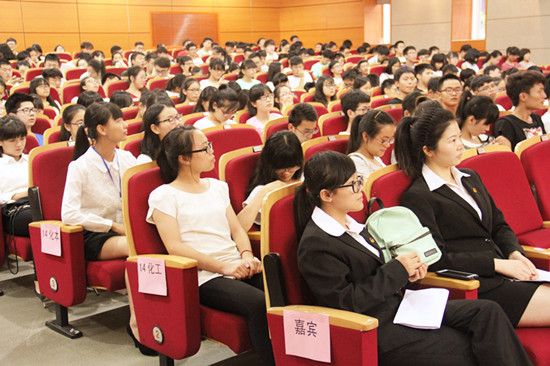 在庄严的团歌声中,大会正式拉开了序幕。团委副书记王慧敏率先致辞,她对过去一学年的工作情况进行回顾与总结,并通过一个短小精彩的视频对各个中心工作进行简要介绍。