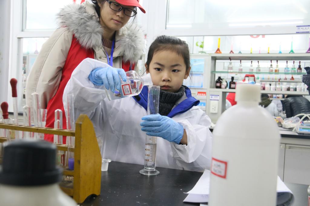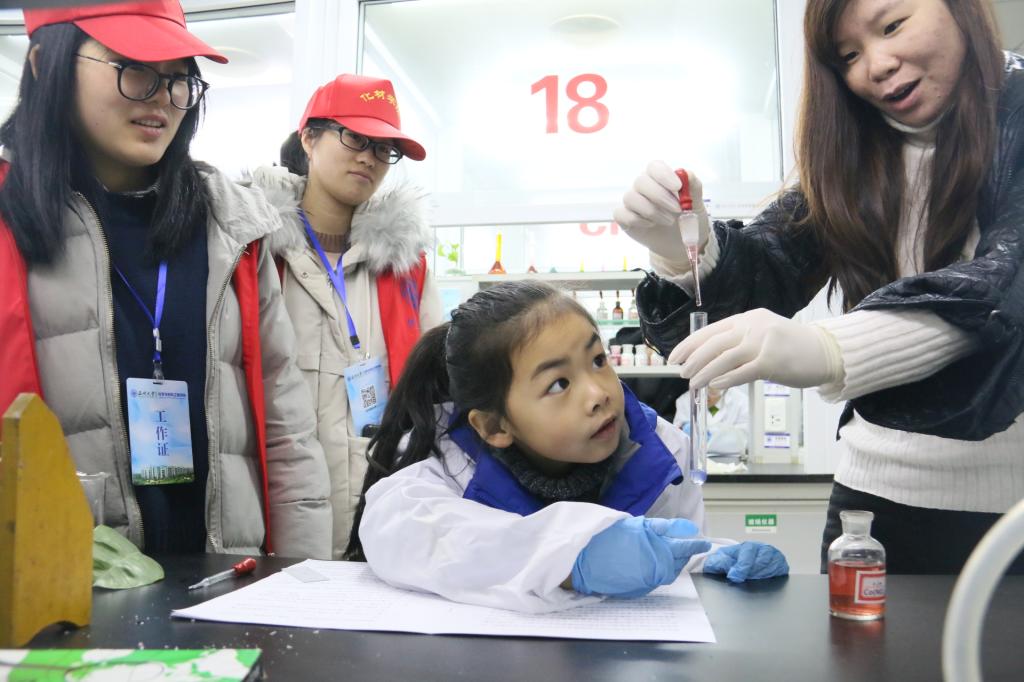 实验室活动前,教工党支部的张卫兵老师为前来参加活动的市民朋友们讲解实验内容、实验时的注意事项,以及处理突发情况的具体方法。然后,实验室志愿者们带领大家一起到实验室进行现场操作。实验室里,小朋友们看到了许多新鲜的事物,心情非常高兴。他们小心翼翼地取药品,用滴管给试管添加化学试剂,并认真地观察试管中反应的颜色变化,细心地对待每一个实验,展现出了小朋友们对实验的无限求知欲。