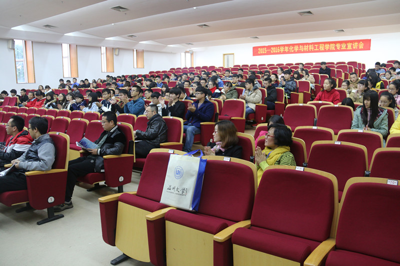 化本专业的发展,从专业概况、定位与目标、师资队伍、教学资源建设与成效、特色与优势等几个方面展示了化本专业的过去、现在及将来。来自13化本班的王优媛通过介绍自己的班级向在场学生展示了化本专业之美以及专业就业广阔的前景。接着,化工系主任徐进以他自己的经历和对化工专业的认识用幽默的口吻对在场学生讲解了化工专业在学习和就业方面的一些事宜,使听众对化工专业有了更深入的了解。来自13材料班的牟露茜也作为班级代表向听众展示了材料专业的魅力。最后,毕业于应用化学专业的校友苏海林以华峰集团经理的身份向在场学生仔细讲解了应化专业在职场上的宽广出路,同时他也也向在场新生提出了一些建议。
