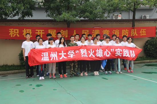 “烈火雄心”实践队实践的第十天,随着实践经验的累积,实践的难度也逐渐加大。下午2点整,消防战士带领实践队员在操场集合,开始进行灭火演练。