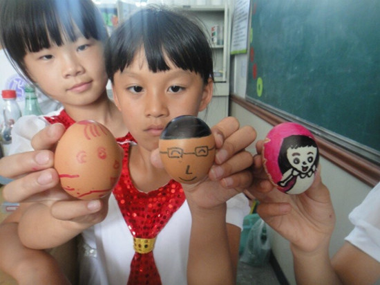 下午举行了蛋壳艺术活动。队员们通过向同学们展示事先制得的无壳鸡蛋让同学们了解了一些基本的化学知识,并让同学们亲自动手观察鸡蛋在食醋中的反应现象;通过在蛋壳上进行彩绘,提高学生的动手能力和创造力。同学们在蛋壳艺术活动中度过了一个快乐的下午。