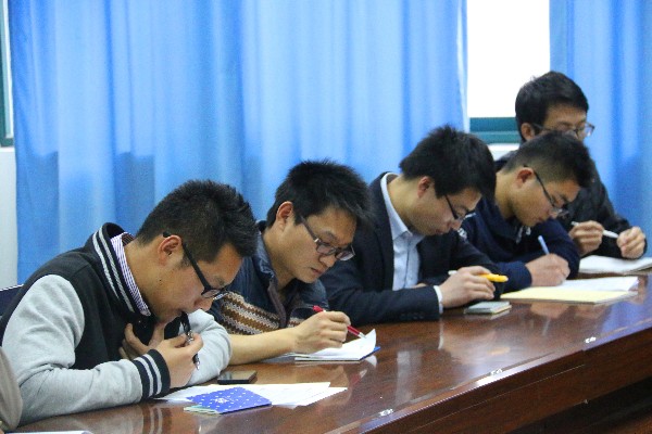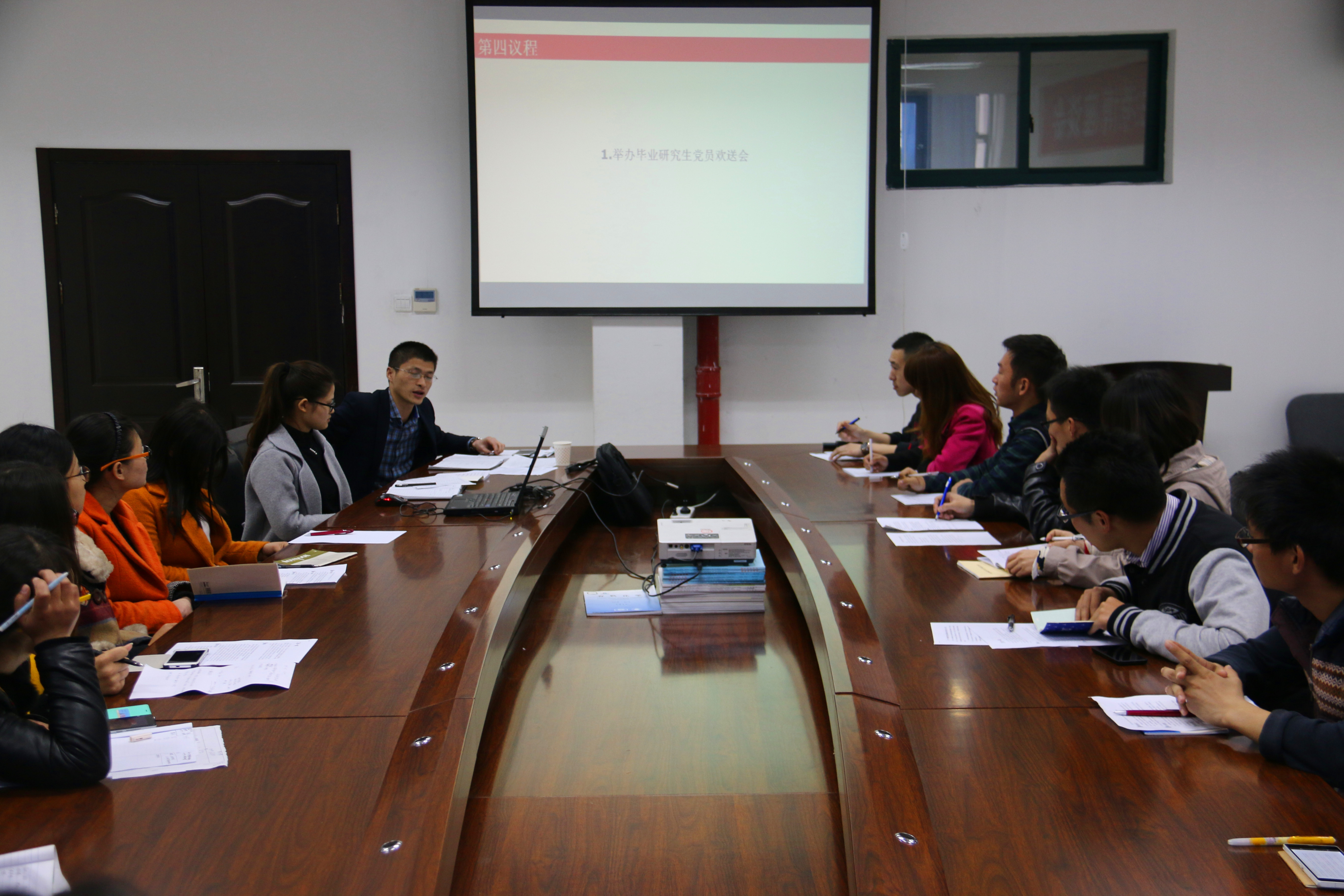 紧接着,王壮老师和韩卓羽老师进行了本学期党员教育活动的布置与安排。党总支对研究生党员支部发展党员流程提出了规范化和严肃化的要求,并将届时举行支部讨论大会观摩会议;此外,韩卓羽老师对今后的党费收缴和支部活动报销进行了简单说明。王壮老师重点对毕业班党员党性教育系列活动进行了说明,主要包括毕业研究生党员欢送会、党员校友交流会、毕业研究生党员文明离校教育、研究生党员考博座谈会以及研究生党员篮球联谊会五大内容。之后,在座党员对落下帷幕的“两会”进行了学习讨论,对高校学生党员怎样贯彻学习“四个全面”提出了进行了热烈讨论。
