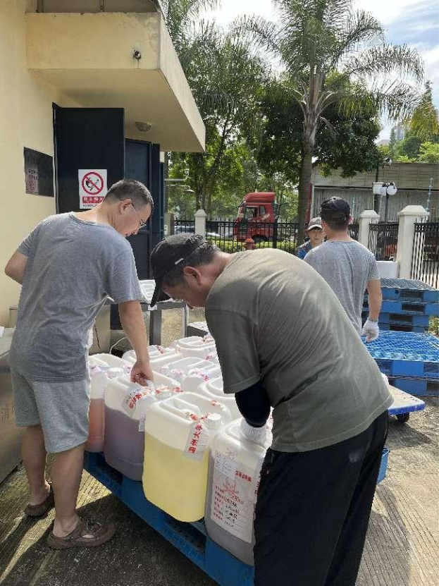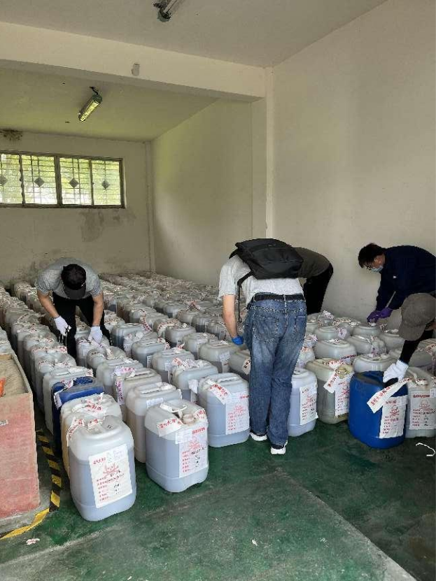 2022年6月24日早上8:00,处置公司人员进行废液测试,以有效保障废液转运过程的安全。经过磅、装运、交付危废转运联单后,于中午10:30顺利离校。此次实验室废弃物共转移处置有机废液、无机废液等共计7.861吨,其中黑料社