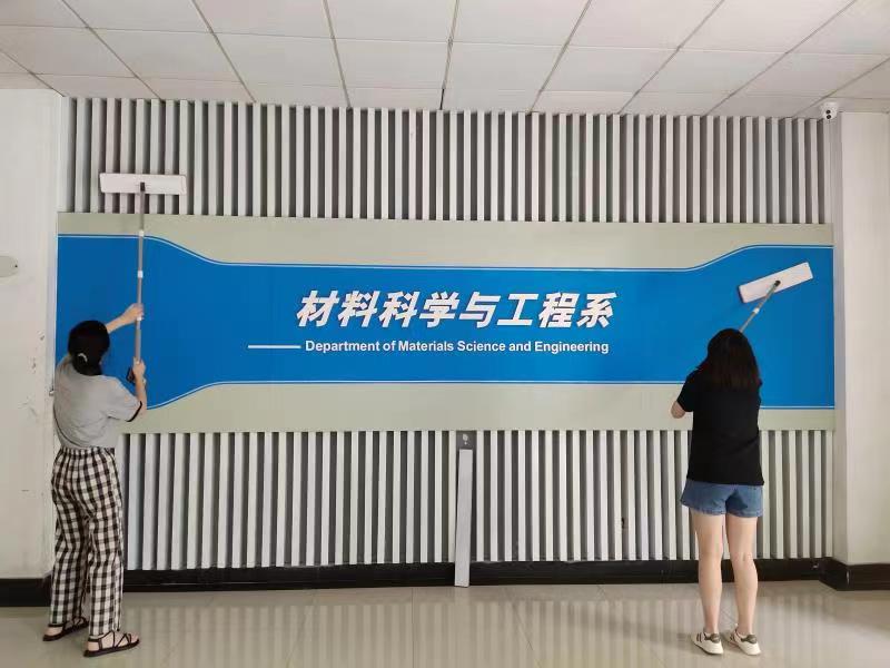 大扫除活动。经过活动前精心策划和有序安排,师生们分组到达指定区域,对宣传栏橱窗、广告栏海报、教学楼走廊玻璃、黑料社