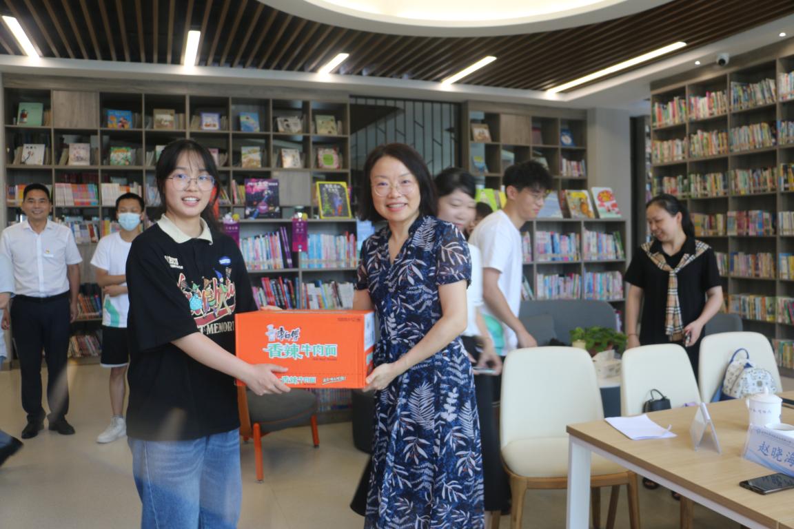 党委书记刘吟为暑期社会实践队同学们发放了慰问品。