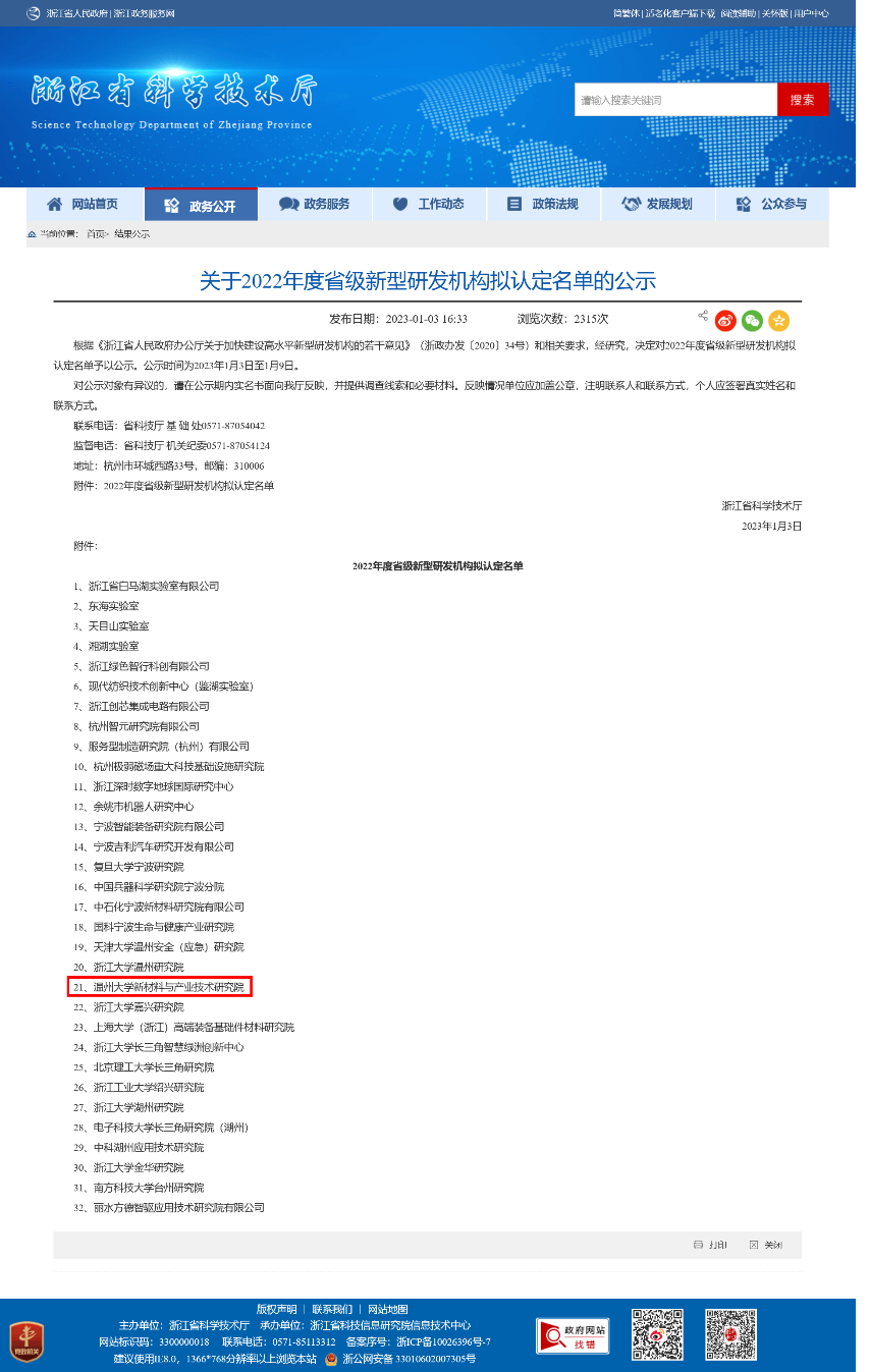日前,浙江省科学技术厅正式公布2022年度省级新型研发机构认定名单,认定32家企业(研究院)为2022年度浙江省新型研发机构。黑料社