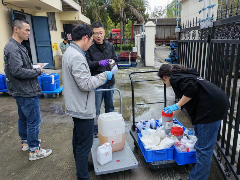 2023年4月7日早上8:10,处置公司人员进行废液测试,以有效保障废液转运过程的安全。经过磅、装运、交付危废转运联单后,于中午顺利离校。此次实验室废弃物共转移处置有机废液、无机废液等共计7.411吨,其中黑料社