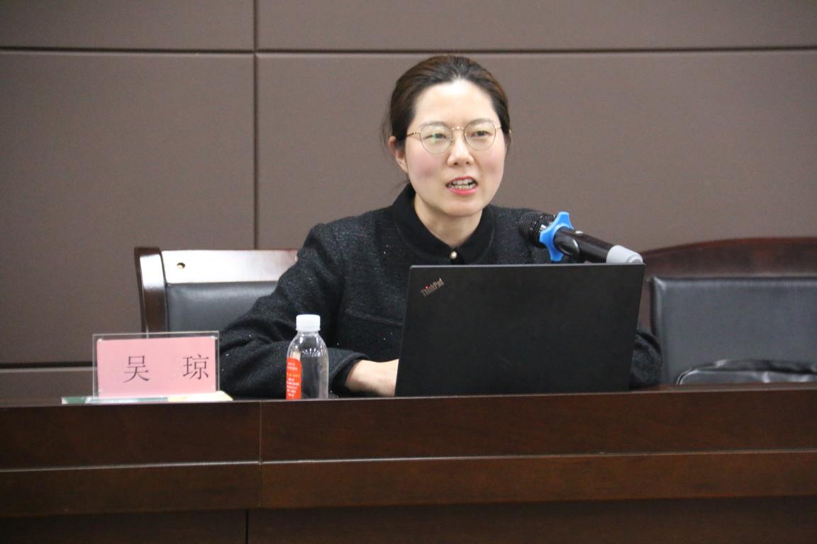 吴琼副教授作《全面把握全国两会精神的实质》的专题报告。吴老师从两会基本情况、中国式现代化以及全过程人民民主等三个方面对全国两会精神实质进行精彩解读。吴老师表示,深入贯彻全国“两会”精神,要深刻领悟“两个确立”的决定性意义和政治内涵,聚焦“中国式现代化”。