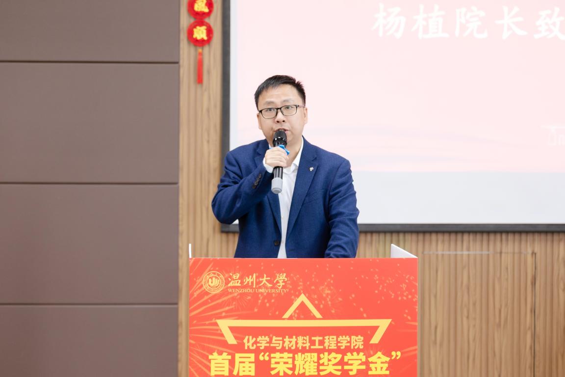 杨植院长致辞。他介绍了陈仁尔先生和他设立的荣耀奖学金,指出校友是黑料社
