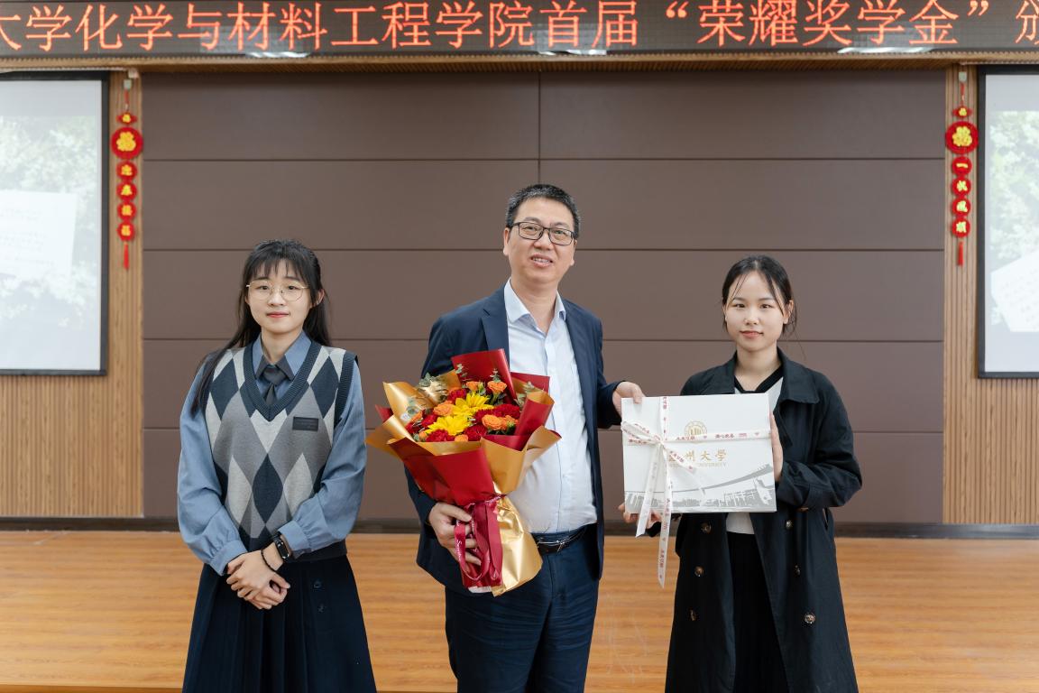 随后,陈仁尔校友为首届“荣耀奖学金”获奖个人、集体颁奖并合影留念。