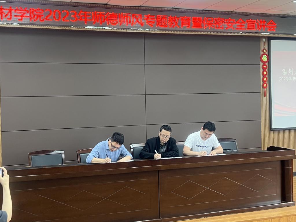 在11C401会议室召开师德师风整治动员大会暨保密安全宣讲会,会议由党委书记刘吟主持,全体教师参加会议。