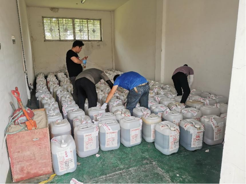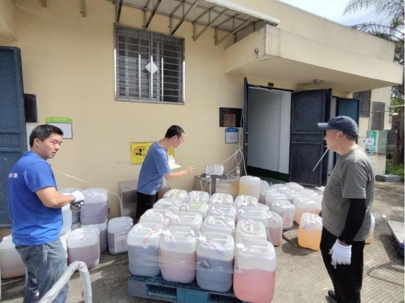 2023年6月30日早上8:30,处置公司人员进行废液测试,以有效保障废液转运过程的安全。经过磅、装运、交付危废转运联单后,于中午10:45顺利离校。此次实验室废弃物共转移处置有机废液、无机废液等及少量废弃试剂(76.2公斤)共计6.851吨,其中黑料社