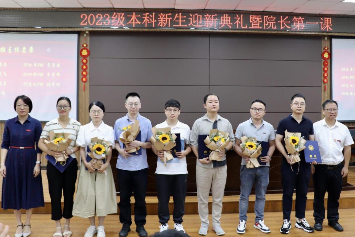 会上举行了新生班主任的聘任仪式,杨植院长与刘吟书记共同为7为新生班主任颁发聘书。新生班主任代表,23化学(师范)2班班主任葛景园作为新生班主任代表发言,为新生们送上了美好的祝福。