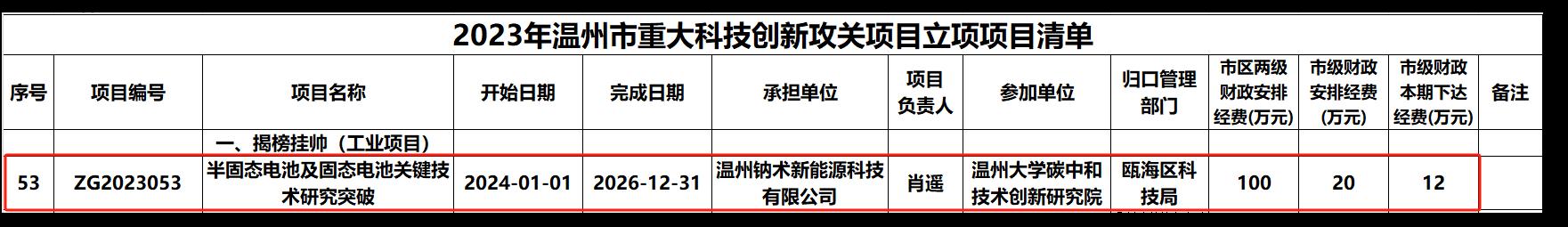 碳中和研究院肖遥教授作为项目负责人带领团队所承担的“半固态电池及固态电池关键技术研究突破”项目经过初审、专家网评、实地评估、现场答辩、党政联席会议研究审定,荣获2023年温州市重大科技创新攻关项目立项。