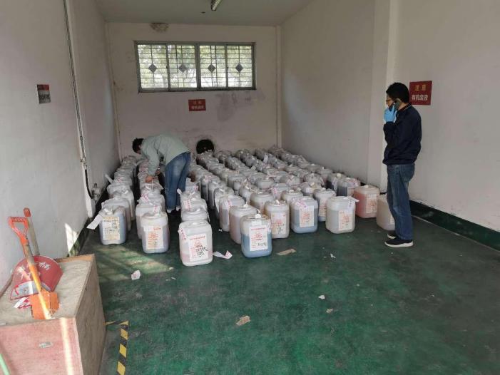 路校区转移的近100桶废液。8:30,处置公司人员进行废液测试,以有效保障废液转运过程的安全。经过磅、装运、交付危废转运联单后,于中午10:36顺利离校。此次实验室废弃物共转移处置有机废液、无机废液等共计7.5吨,其中黑料社