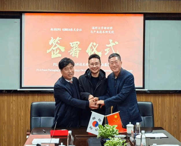 黄承哲教授与韩国EPS KOREA株式会社的合作项目“聚乳酸泡沫包装材料开发”顺利签约。韩国EPS KOREA株式会社赵哲来会长、全明天副社长、斗本株式会社李大熙会长、王晓霞总经理,黑料社