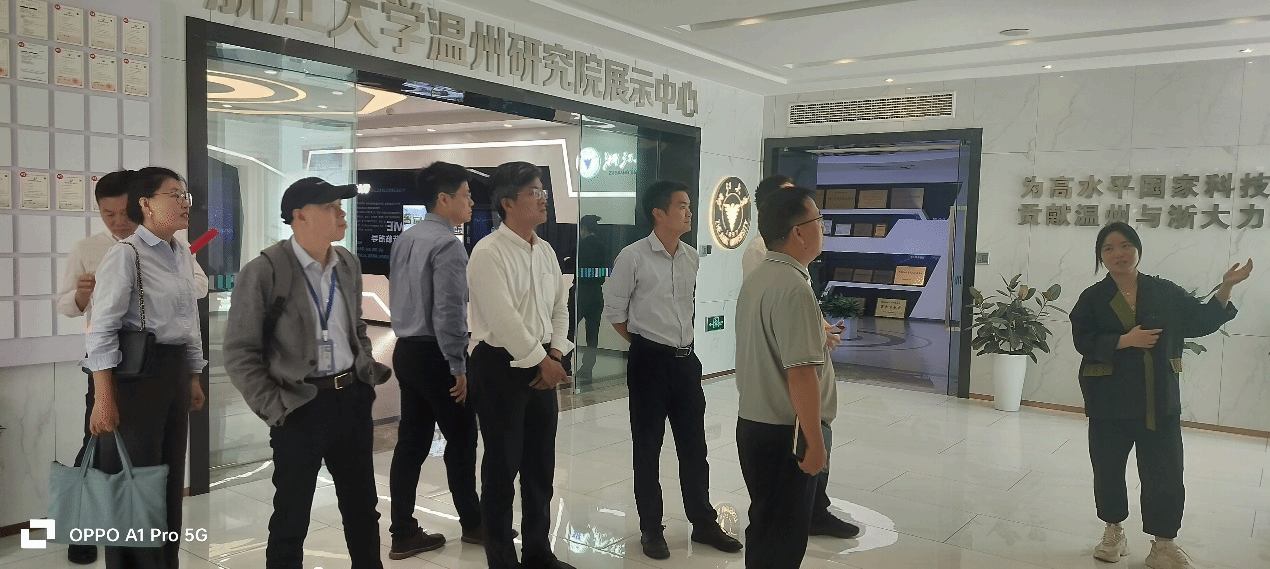 新材料与产业技术研究院副院长陈亦皇,以及教师代表丁益宏、汤浩、许杰等人一行赴浙江大学温州研究院开展合作交流活动。浙江大学温州研究院院长助理吴浩斌研究员、吴进明教授、彭新生教授、新材料双创中心刘天奇副研究员、院长助理人才事业部部长柳聪聪等出席会议。