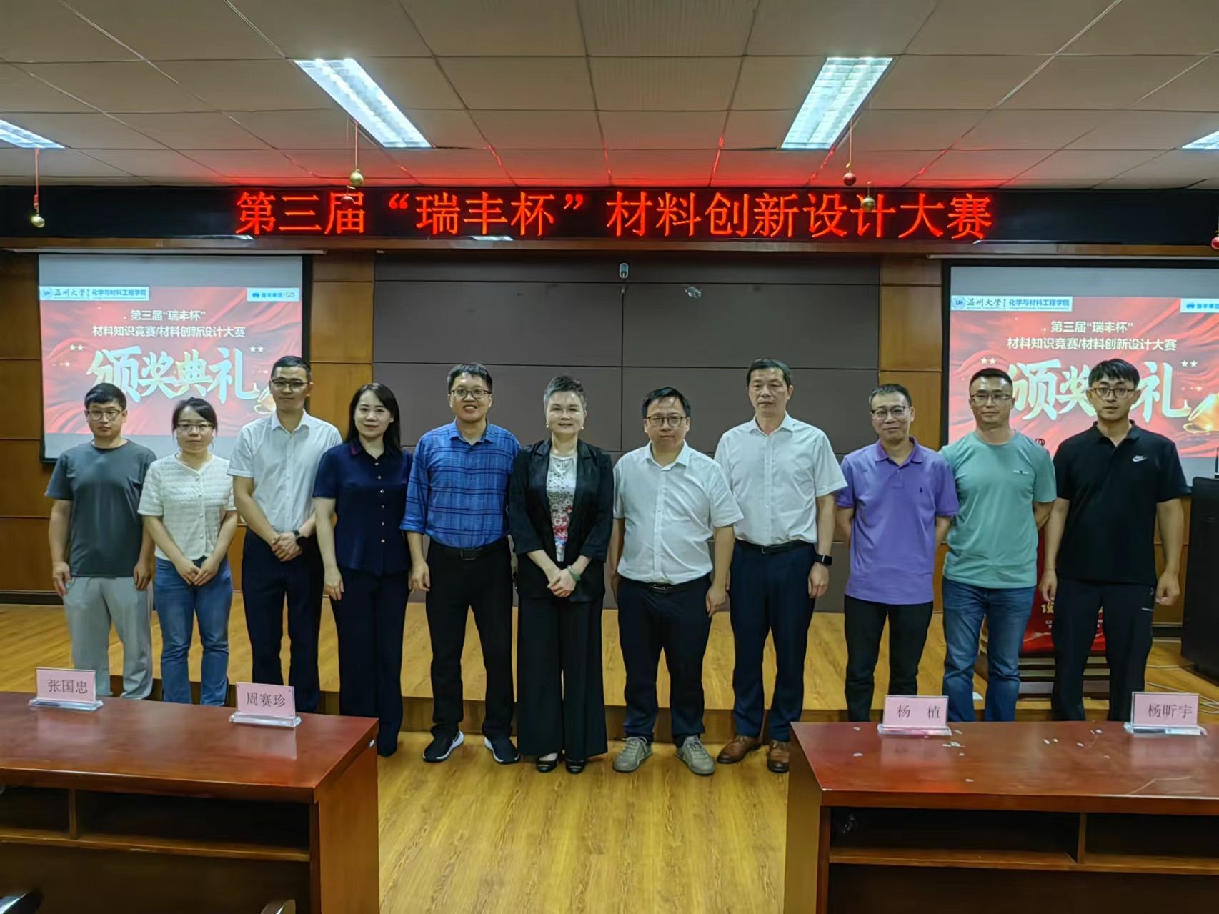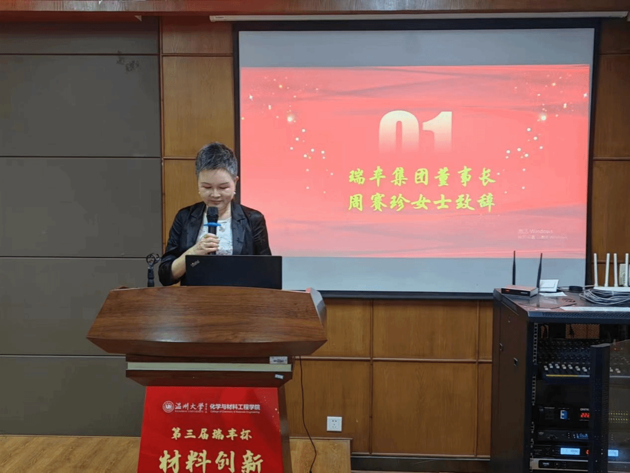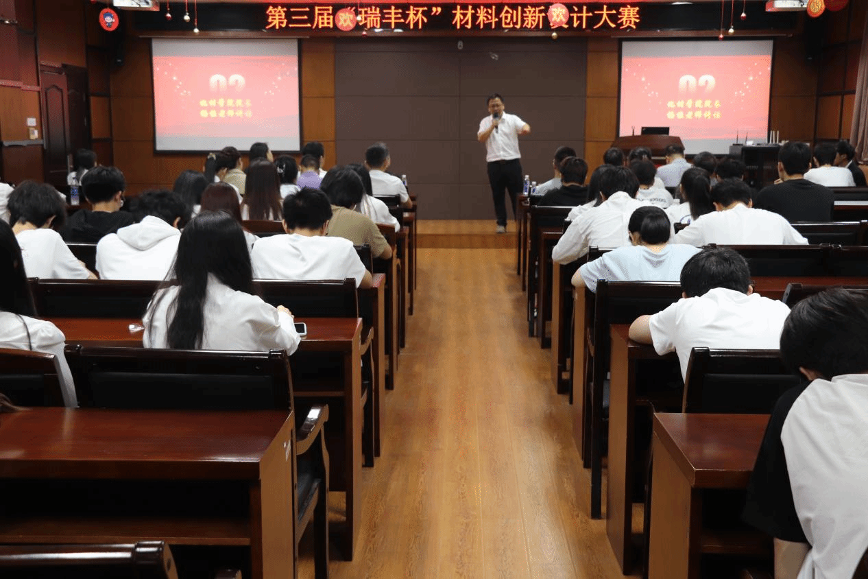 学工办、温州市瑞丰控股集团有限公司在11B208会议室联合举办了第三届“瑞丰杯”材料方案创新设计竞赛。瑞丰控股集团董事长周赛珍女士;瑞迪新材料有限公司总经理张国忠先生;瑞迪新材料有限公司品保部主管田文斌先生;黑料社