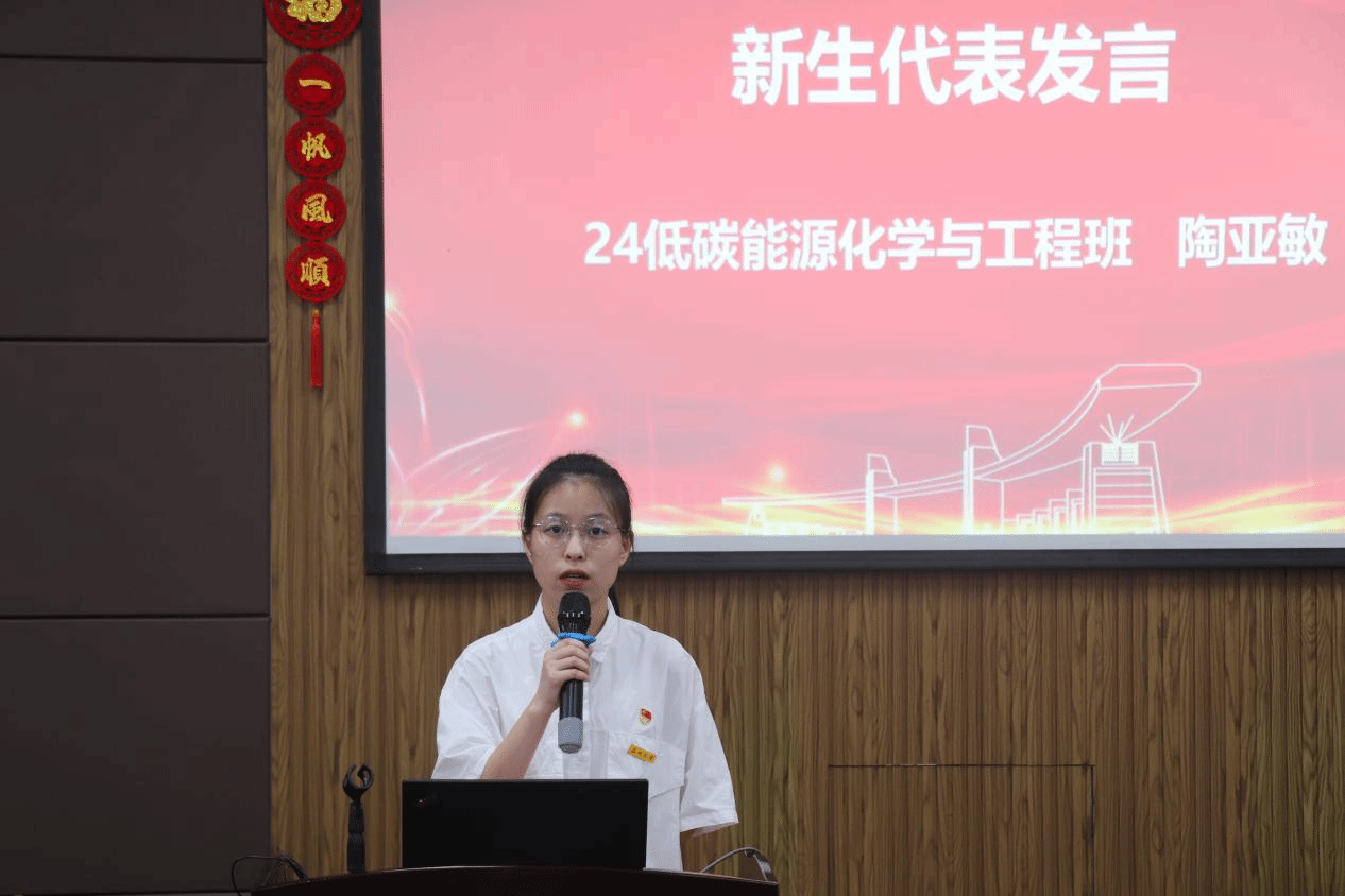 新生代表24低碳能源化学与工程班陶亚敏同学发言。她感恩在黑料社