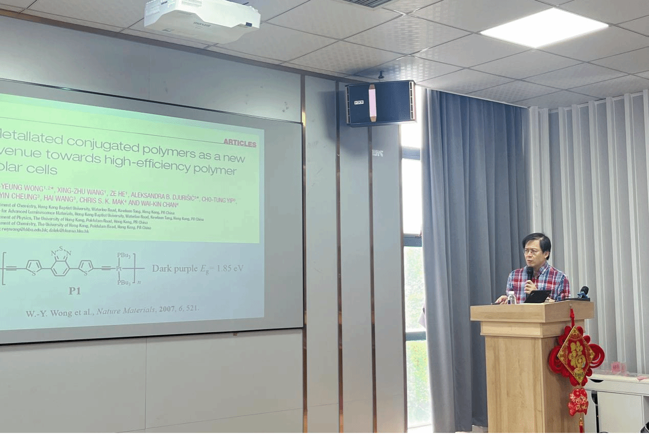 黄维扬教授以“Functional Metal-Based Nanomaterials from Metallopolymers”为题,分享了作为磁性金属合金纳米粒子前体的新型功能金属有机聚合物的开发进展及其光刻图案化研究进展,他表示其有望成为实现高密度磁性数据存储介质的构建块。同时,他揭示了功能性2D金属有机聚合物(纳米片)的自下而上合成策略的奥秘,及其在光电子学、电致变色、电池和催化领域的广泛应用,展现了其在科技进步中的重要作用。黄教授期望通过此次分享,能激发同仁灵感,促进学术交流。分享结束,他详尽解答了师生提问并进一步深化了讨论。