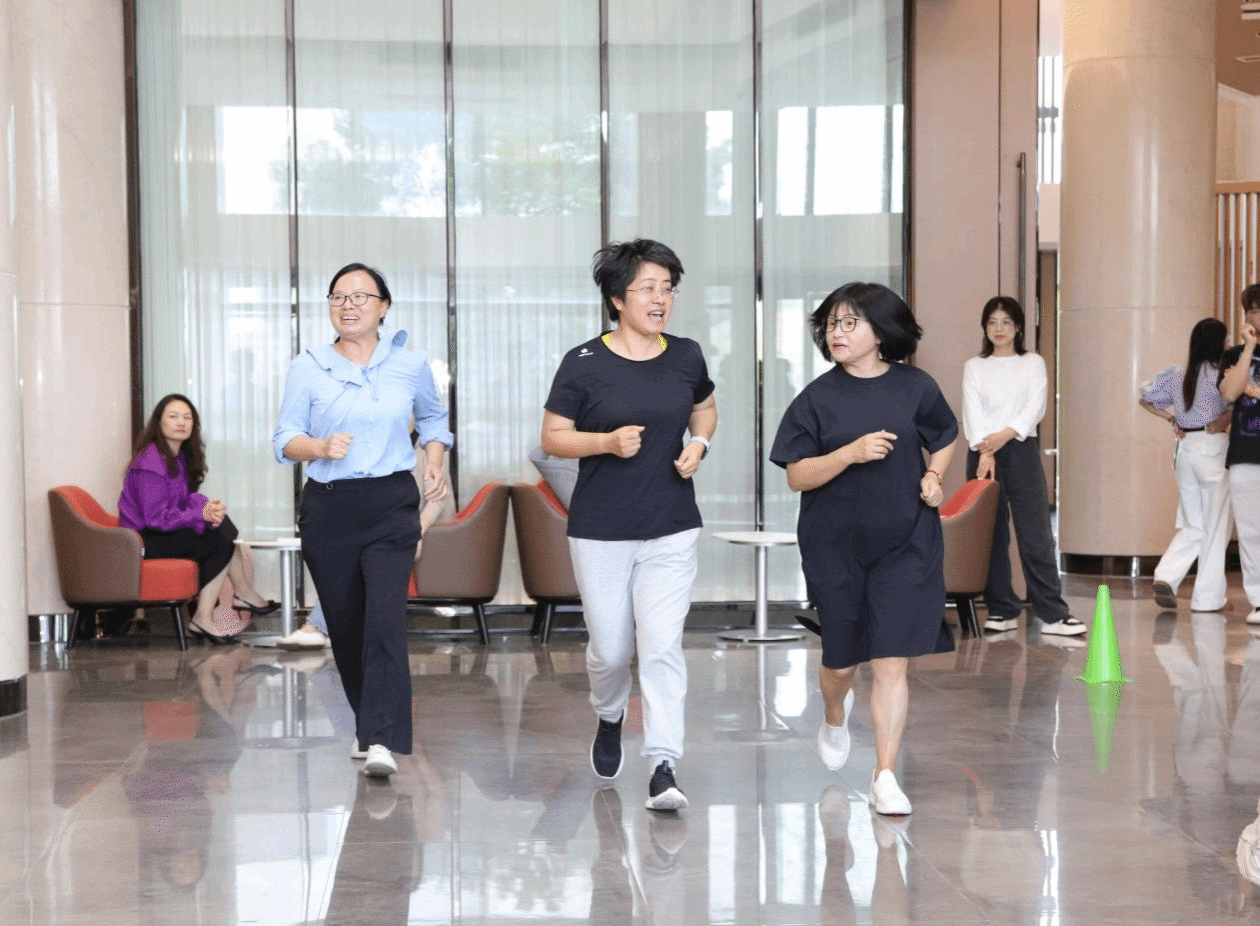 活动开始,李老师向教职工们生动分享超慢跑的概念,运用图片和视频,详细介绍了超慢跑的适用人群、练习方法和特点与优势。在现场演示环节,李老师一对一指导教职工们通过调节呼吸节奏,配合身体、手臂和腿部的姿势,做出科学的超慢跑动作,以达到放松身心、缓解压力、调节情绪的效果。参与的教职工们表示非常高兴参加这样暖心的活动,感慨短短午间一小时意犹未尽,并对后续活动充满期待。