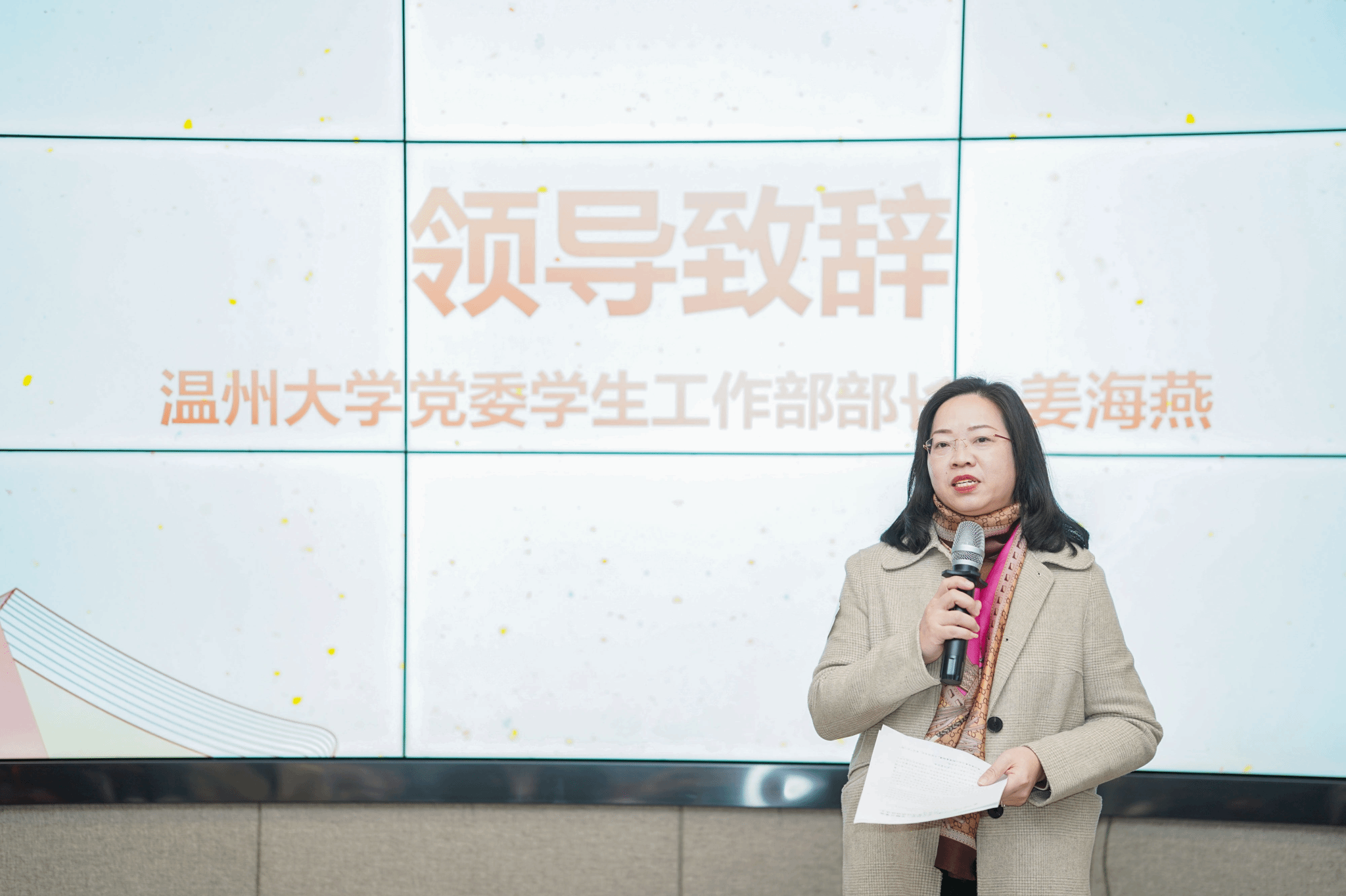 校党委学生工作部部长姜海燕致辞。姜部长首先向出席活动的领导与师生表达了诚挚欢迎与感谢,并鼓励各位辅导员和老师们用行动为自己深度赋能,与学生双向奔赴,催生可喜成果。姜部长特别强调要充分发挥女辅导员半边天的韧性、细心等特质,做好做优“慧心堂”女辅导员关爱项目。并与辅导员分享三点共勉心得。一是谈心谈话是心与心的深度相逢,辅导员要用“实心眼”与学生搭建“连心桥”,以各种方式全面摸清谈话学生学情,做到心中有数、有的放矢、精准“把脉”;二是精准关切是师与生的实处链接,谈心谈话一定要有针对性,做到“一把钥匙开一把锁”,温暖学生心房、找出共同关切、摸到深处症结、解决实际问题;三是见微知著是情与理的高度融合,辅导员要以细心精准捕捉信息,听懂弦外之音,用情感滋润心田、用理性化解难题,引领学生想学、能学、乐学。