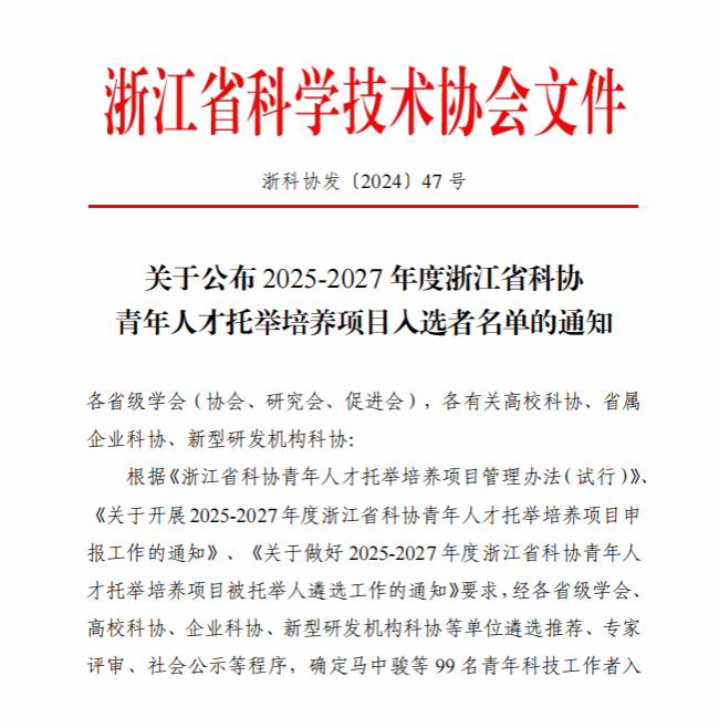 近日,2025年度浙江省科协青年人才托举培养项目入选名单公布,黑料社